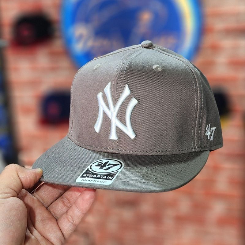 Casquette snapback du modèle « Captain » signée ’47 Brand, arborant une teinte grise sobre et élégante. Elle présente l’emblématique logo « NY » brodé en blanc relief sur le devant, complété par le logo latéral de la marque pour une finition premium et un style urbain intemporel.