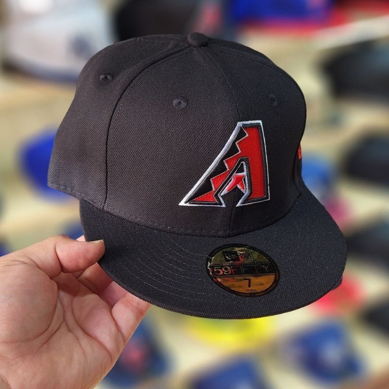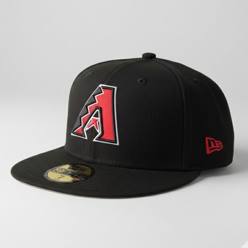 Casquette fitted authentique arbore une couronne noire sobre avec le logo emblématique en forme de « A » brodé en rouge et noir. Un modèle classique et robuste qui offre une coupe premium, parfait pour les fans des Diamondbacks recherchant un style urbain et affirmé.