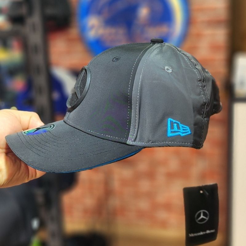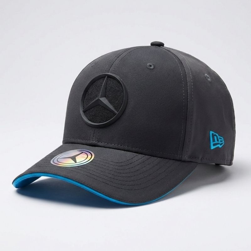 L’élégance technique au service de la passion automobile. Cette casquette officielle New Era se décline dans un noir profond sublimé par des touches de turquoise électrique, la couleur emblématique de l’écurie Mercedes. Avec son logo Mercedes en relief gomme et ses finitions soignées, elle incarne parfaitement l’esprit de compétition et le style moderne des circuits.