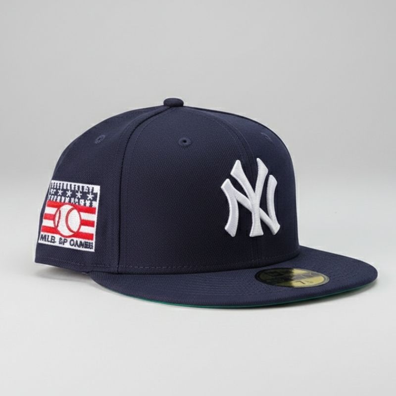 Casquette 59FIFTY fermer arbore le coloris bleu marine emblématique des Yankees avec le logo « NY » brodé en relief blanc à l’avant. Elle se distingue par son patch latéral coloré commémoratif, ajoutant une touche d’exclusivité et d’histoire à ce modèle classique. Un accessoire incontournable pour les fans, offrant la qualité de fabrication premium et le style intemporel de New Era.