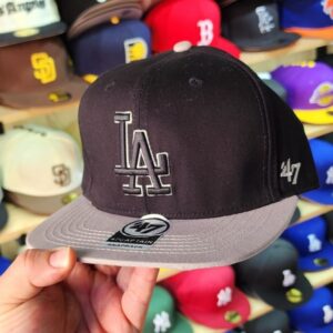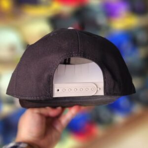 Casquette avec visière plate et fermeture réglable à pression à l’arrière.