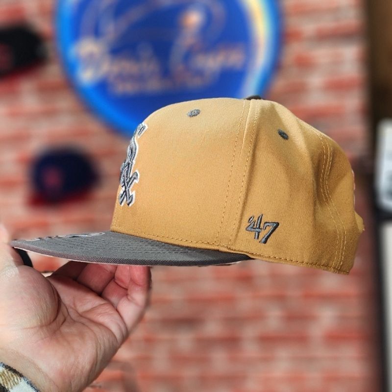 Casquette snapback ajustable modèle « Captain » de ’47 Brand au look audacieux, combinant une couronne moutarde et une visière gris anthracite. Elle arbore le logo iconique « Sox » brodé en gris et blanc avec une finition en relief, parfaite pour un style urbain qui sort de l’ordinaire.