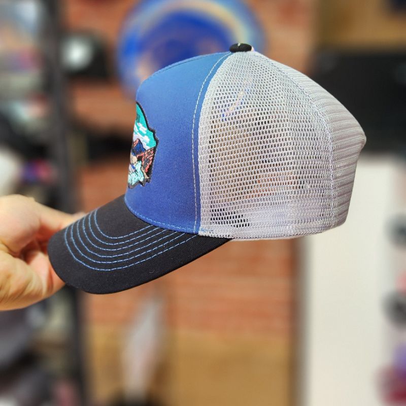 Une casquette Trucker moderne au style « outdoor » combinant des tons bleus et gris. Dotée d’un écusson brodé paysage de montagne et d’un filet respirant, elle offre un look dynamique et décontracté. Conçue pour allier confort et robuste lors de vos sorties.